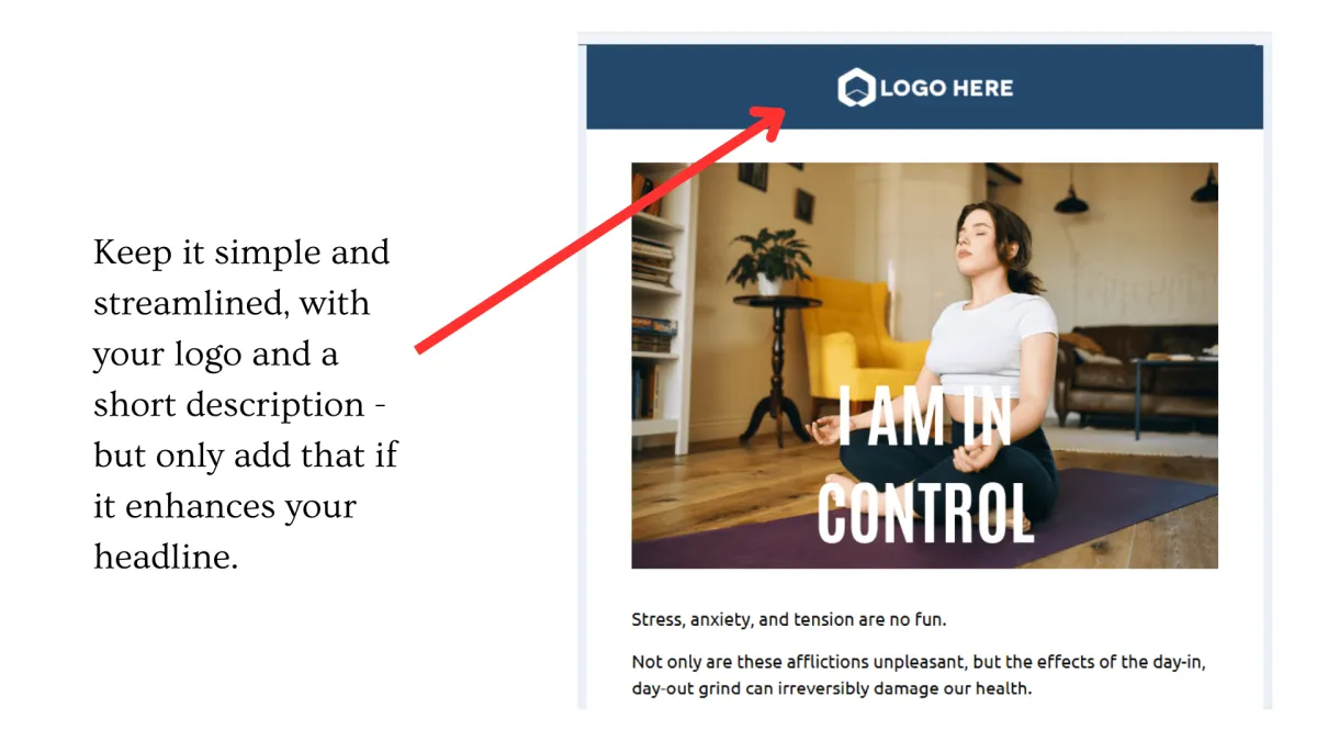 Your email header should feature your logo and minimal text that doesn't distract from your main message. A cluttered header can overwhelm readers and reduce the impact of your core content.