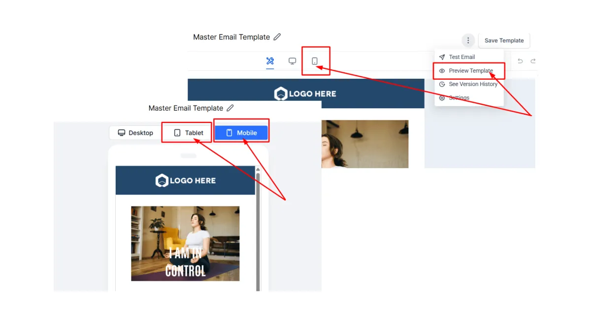Design your emails with mobile viewing in mind, using single-column layouts and properly sized images. Use the tablet and mobile view in the email editor to see how your email looks on mobile devices before you send.
