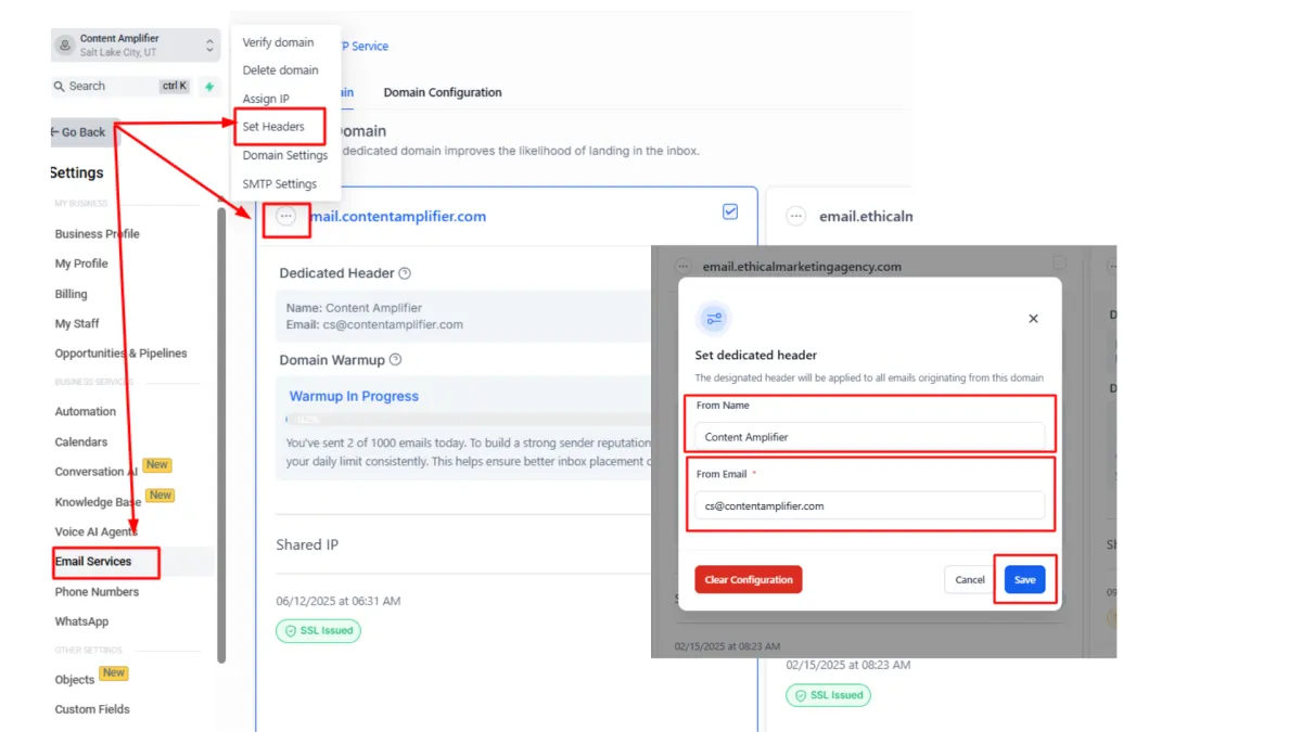 The headers are the "From Name" and "From Email" addresses that will be the default headers the CRM will use in all your emails. Your "From email" should come from a real email that you have.
